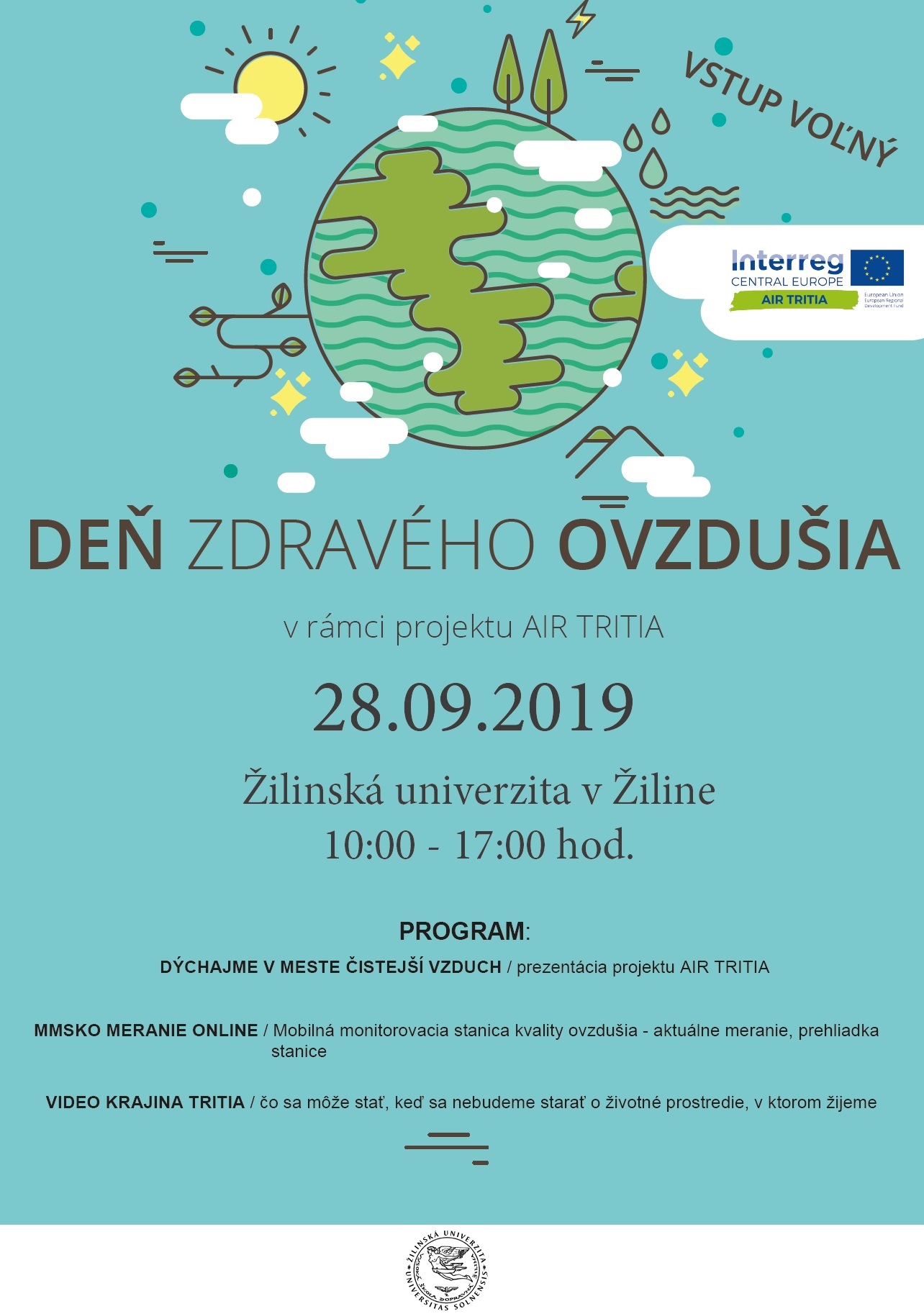 V sobotu, 28. septembra 2019 sa v areáli ŽILINSKEJ UNIVERZITY V ŽILINE, VEĽKÝ DIEL uskutoční  Deň zdravého ovzdušia. Mottom podujatia bude: „Čo ja môžem urobiť pre zlepšenie ovzdušia vo svojom okolí.“. Deti, študenti a aj dospelí si môžu vo vedomostnom teste overiť svoje znalosti z oblasti znečistenia ovzdušia. Účastníci, ktorí sa zapoja do vedomostného kvízu, budú odmenení propagačnými predmetmi  a dostanú aj malé občerstvenie.